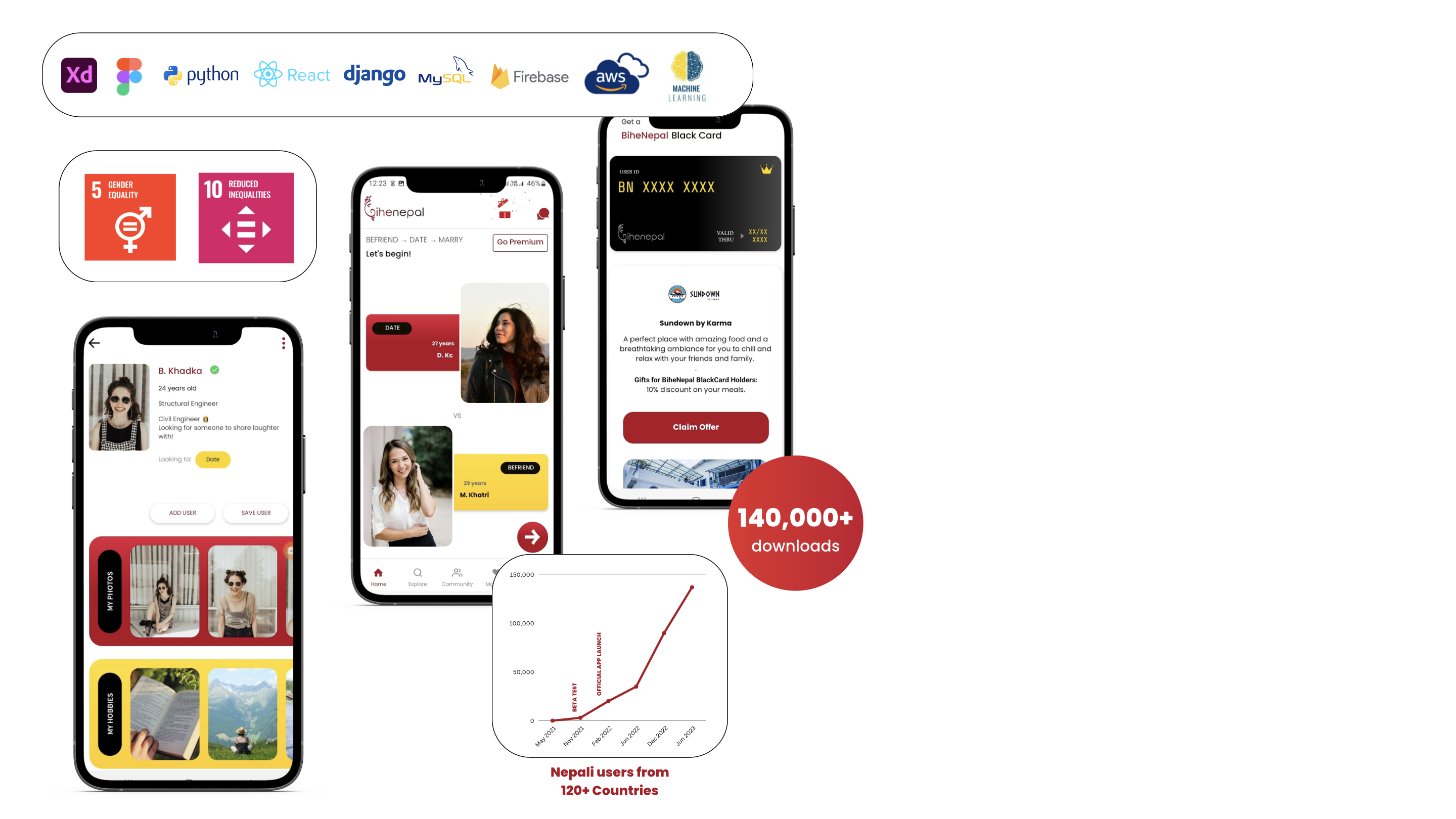 BiheNepal, Nepal's first official Dating/Matrimonial app, was designed and developed entirely in-house by Rawa Software. This platform swiftly captured the hearts of users and has evolved into its own entity, BiheNepal Pvt. Ltd., operating as an independent Limited Liability Company.