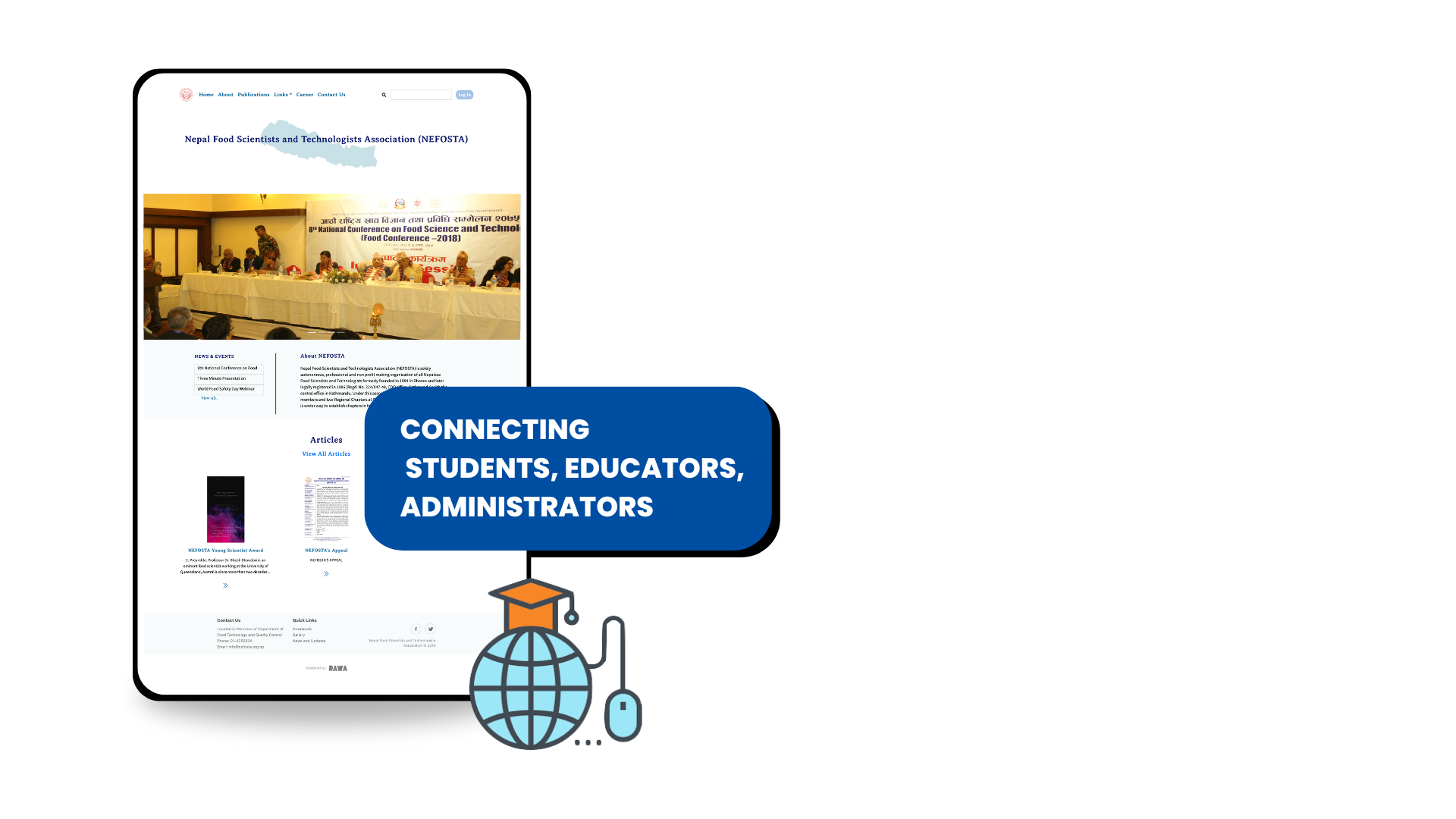 Rawa embarked on a transformative journey to craft a comprehensive Organization and Student Portal for NEFOSTA (Nepal Food Scientists and Technologists Association). The platform was devised to seamlessly connect students, educators, and administrators while offering essential resources and fostering a vibrant academic ecosystem.